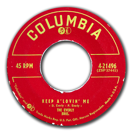 165. The Everly Bros. "Keep A' Lovin' Me/The Sun Keeps Shining" COLUMBIA 21496 VG RARE STOCK COPY OF THEIR VERY FIRST RECORDUSUALLY ONLY FOUND AS A PROMO MB $25
