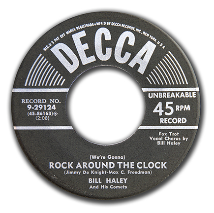 186. Bill Haley And His Comets "(We're Gonna) Rock Around The Clock/Thirteen Women" DECCA 29124 M- ALL TIME CLASSIC! This is the very FIRST PRESSING on the old style "lines" label. If your copy doesn't look like this, you don't have an original. MB $25
