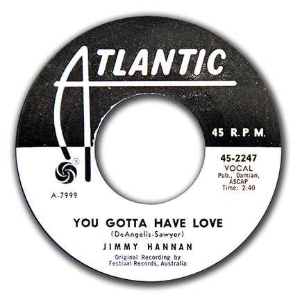 187. Jimmy Hannan (backing vocals by The Bee Gees) "You Gotta Have Love/Beach Ball" ATLANTIC 2247 M- White label promo MB $25