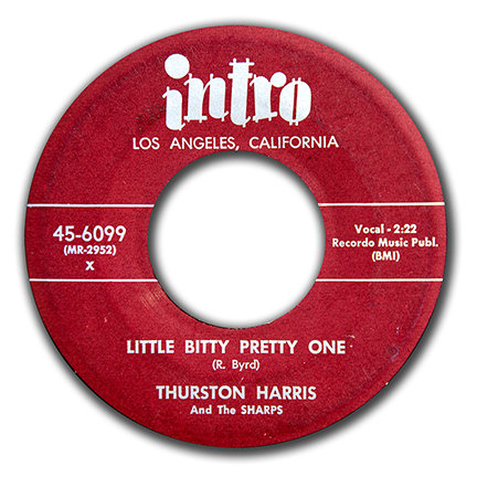 188. Thurston Harris And The Sharps "Little Bitty Pretty One/I Hope You Won't Hold It Against Me" INTRO 6099 VG+ TRUE FIRST LABEL, FIRST PRESSING before it hit big on ALADDIN. I have never seen nor had this one before! VERY rare! MB $100