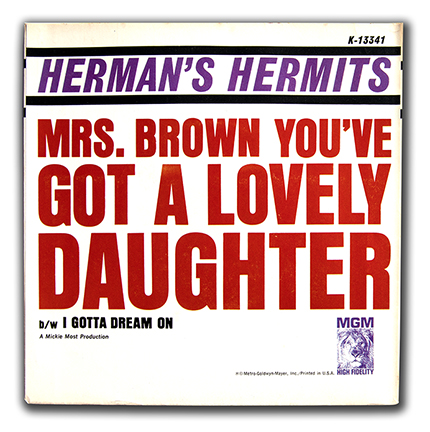 195. Herman's Hermits "Mrs. Brown You've Got A Lovely Daughter/I Gotta Dream On" M-G-M 13341 M-/M- With PICTURE SLEEVE MB $30