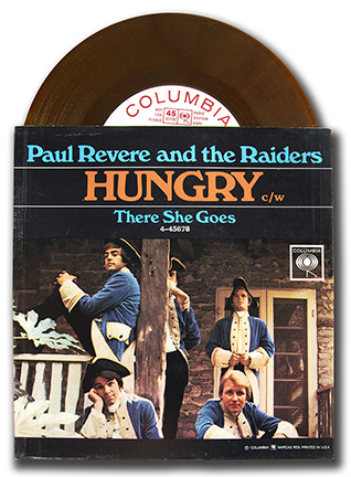 308. Paul Revere And The Raiders "Hungry/There She Goes" COLUMBIA 43678 VG+/M- WHITE LABEL PROMO with PICTURE SLEEVE! RECORD is pressed on BEAUTIFUL RED VINYL! MB $50