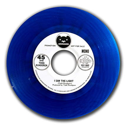345. Todd Rundgren "I Saw The Light/SAME" BEARSVILLE 0003 MINT WHITE LABEL PROMO with MONO version on one side and STEREO version on the other side . . . pressed on BEAUTIFUL BLUE VINYL MB $25