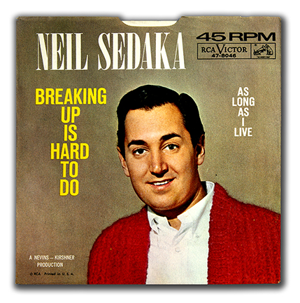 354. Neil Sedaka "Breaking Up Is Hard To Do/As Long As I Live" RCA VICTOR 8046 M/M With PICTURE SLEEVE, Old Store Stock New MB $25
