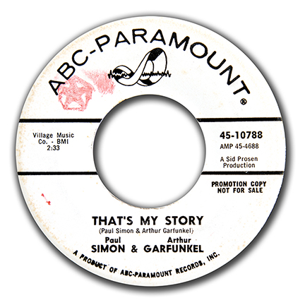 363. Paul Simon & Arthur Garfunkel "That's My Story/(Uncle Simon's) Tia-Juana Blues" ABC PARAMOUNT 10788 M- WHITE LABEL PROMO with small stain on A-side label MB $25