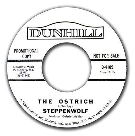 385. Steppenwolf "The Ostrich/A Girl I Knew" DUNHILL 4109 M- WHITE LABEL PROMO Rare one MB $50