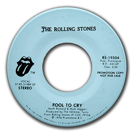 338. The Rolling Stones "Fool To Cry/SAME" ROLLING STONES 19304 M- LIGHT BLUE LABEL PROMO with SAME SONG on both sides MB $20