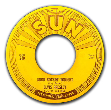 2. Elvis Presley "Good Rockin' Tonight / I Don't Care If The Sun Don't Shine" SUN 210 M- TRUE FIRST PRESSING WITH "RAY" Brown writer credit instead of ROY Brown who actually wrote the song! If you are looking for a super clean 210, this is the one for you.MB $2,000