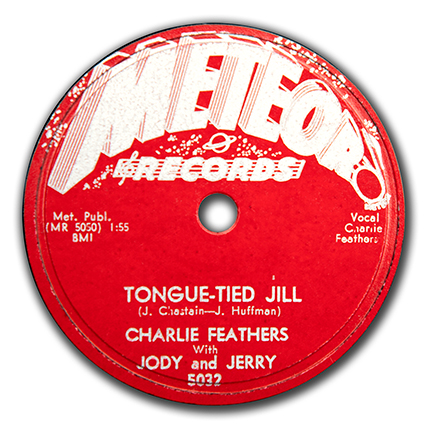 9. Charlie Feathers With Jody And Jerry" Tongue-Tied Jill / Get With It" METEOR 5032 M- Scarce on 45 but REALLY scarce on 78 rpm, andohhh . . . the sound that leaps from the grooves on 78 rpm!!! All time Memphis classic. MB $600