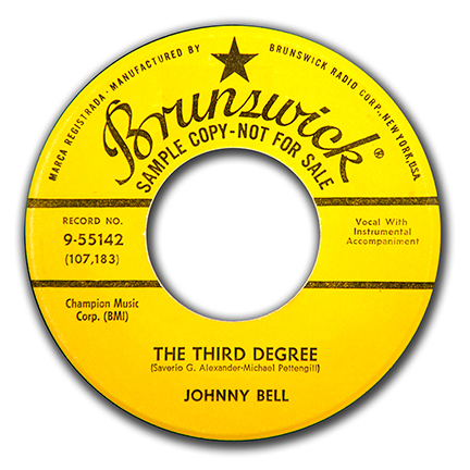 16. Johnny Bell "The Third Degree/Flip, Flop And Fly" BRUNSWICK 55142 VG+ YELLOW LABEL PROMO MB $50